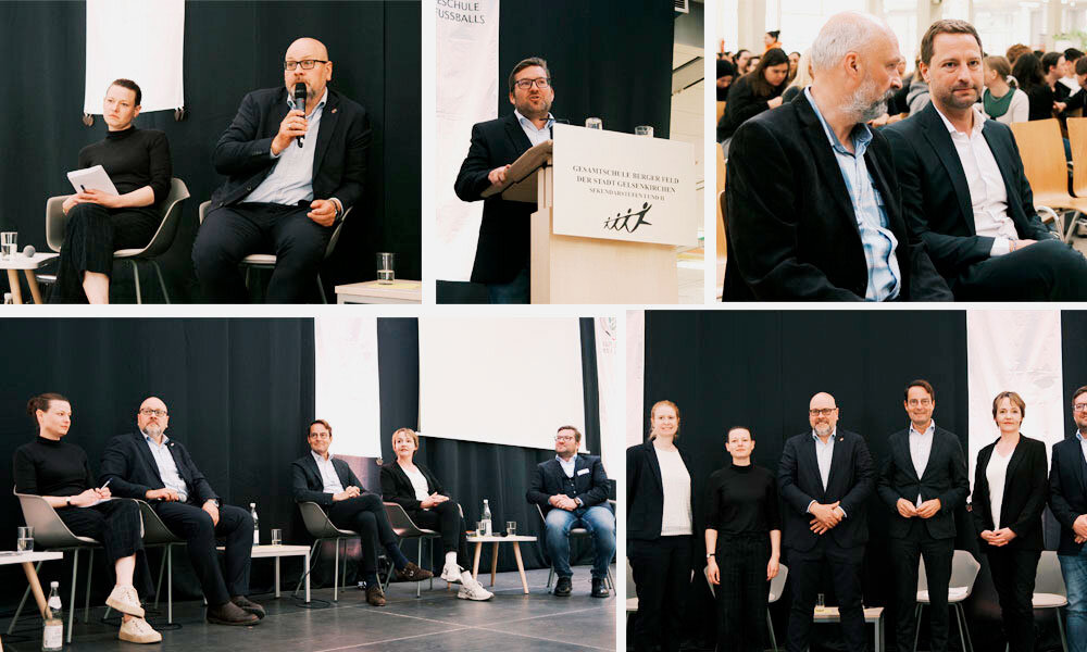 Moderiert von Sarah Gartner (Institut für Stadtgeschichte Gelsenkirchen), diskutierten neben den Referenten Corinna Bittner und Dr. Daniel Schmidt danach engagiert Andreas Bothe (Regierungspräsident Münster), Nina Schadt (Vorstandsvorsitzende aktuelles forum e.V. Gelsenkirchen) und Mario Sommerfeld (Schulleiter Gesamtschule Berger Feld Gelsenkirchen) v.a. über die Bedeutung dieses Gedenktages für das jeweilige berufliche Umwelt, aktuelle Umdeutungsversuche des Geschichtsverständnisses durch rechte Gruppierungen und die Wunschvorstellungen der Teilnehmer für das zukünftige Gedenken.