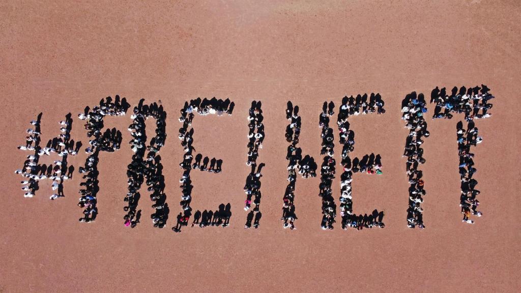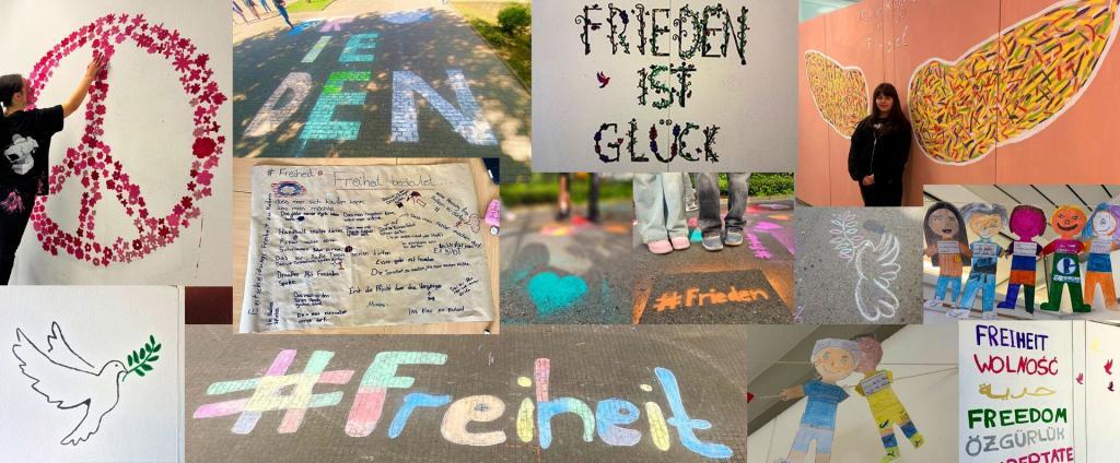 Am 8. Mai 2025 verwandelte sich die Gesamtschule Berger Feld in ein lebendiges Fest der Freiheit und Demokratie. Unter dem Motto #Freiheit starteten wir den „Tag der Demokratie“ mit einer Vielzahl kreativer und lehrreicher Aktionen. Gemeinsam mit dem Volksbund Deutscher Kriegsgräberfürsorge e.V. sprühten wir Friedenszeichen im Stadtgebiet, gestalteten den Schulhof mit Kreide und verwandelten die Schulflure in bunte Kunstwerke. In den Klassen fanden intensive Diskussionsrunden statt, und auf dem Schulhof entstanden beeindruckende Graffiti-Kunstwerke. In vielen kleinen Projekten konnten die Schüler:innen Demokratie sichtbar machen. Ein besonderes Highlight war ein Foto, das das Wort „#Freiheit“ aus der Vogelperspektive zeigte.